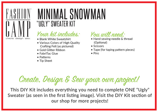 DIY Kit Ugly Christmas Sweater | Minimal Snowman "Ugly" Holiday Sweater