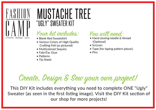 DIY Kit Ugly Christmas Sweater | Mustache Tree "Ugly" Holiday Sweater