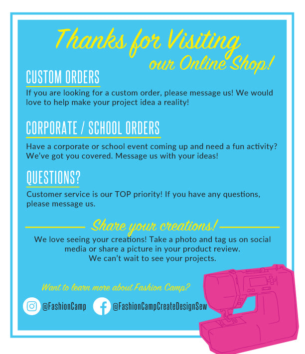 **Our instructions are written to machine-sew the donut, however it is possible to hand sew (or even - fabric glue!) the donut portion together if you do not want to machine sew it. The frosting and sprinkles are glued on using the Fabric Glue included in the kit.