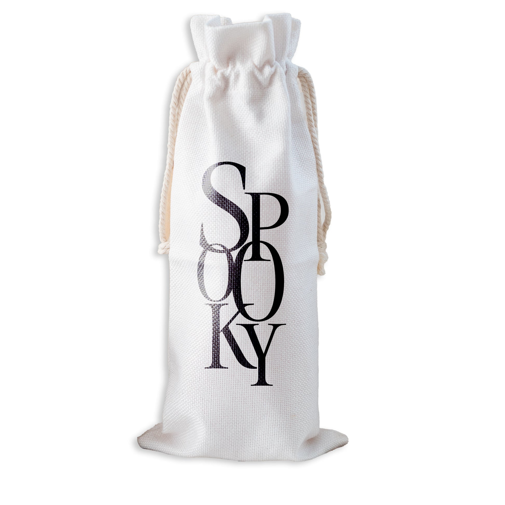 Spooky in black on a canvas wine bag. Perfect gift accessory for this Halloween season! This wine bag will help elevate your gift baskets or Boo baskets in this Spooky Season!