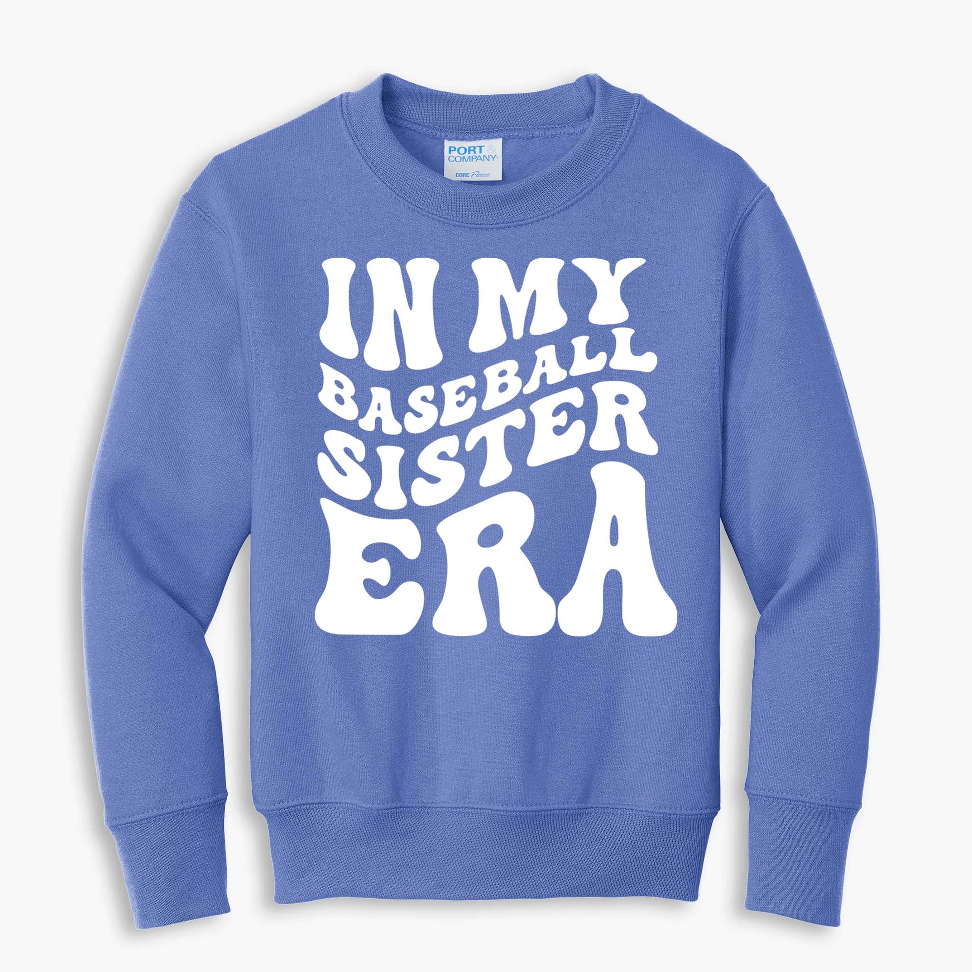 In My Baseball Sister Era graphic in White on front of sweatshirt.